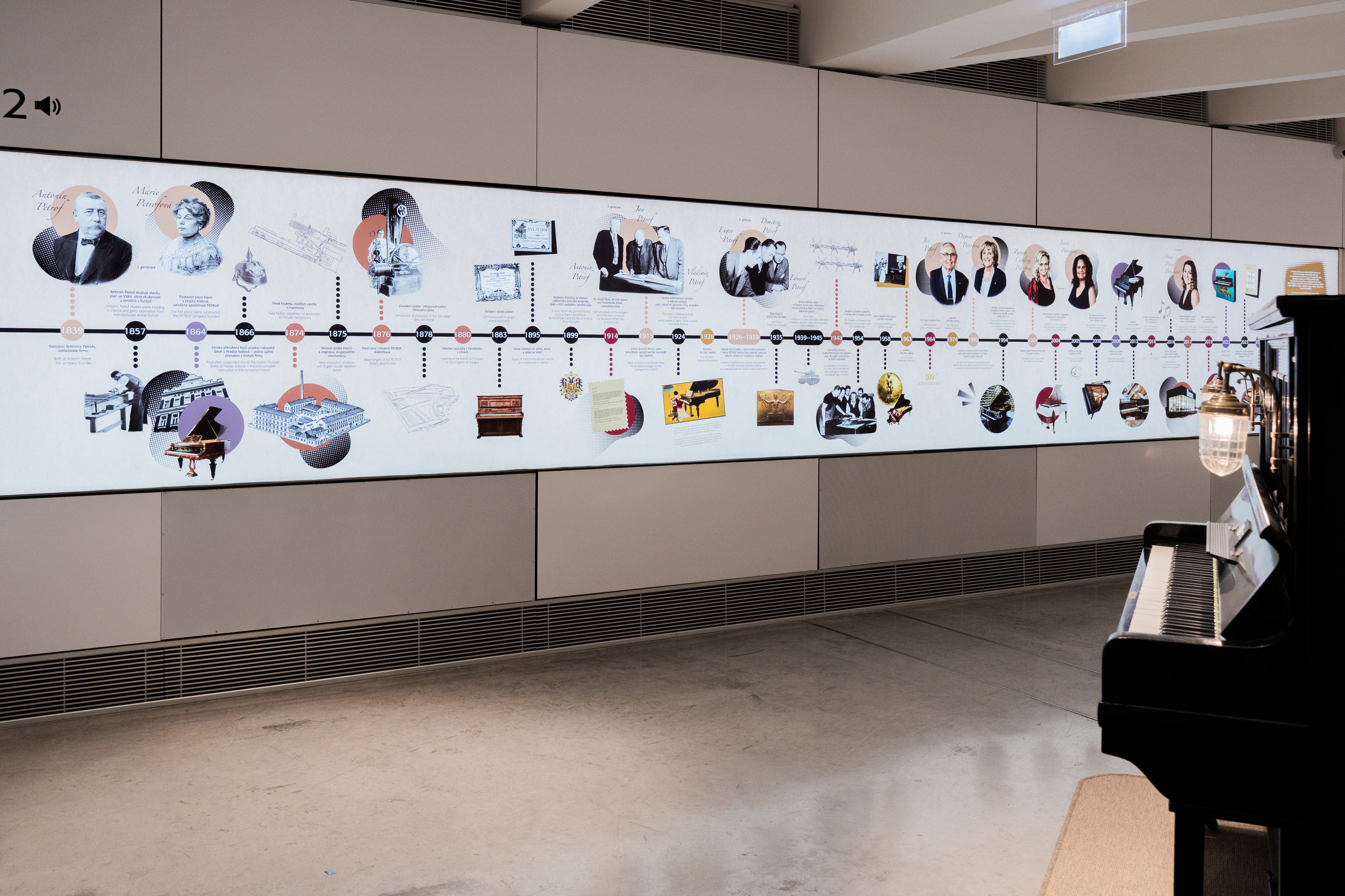 In the very heart of Hradec Králové, a new space has been created to guide visitors through the story of the PETROF brand – from the oldest preserved piano dating back to 1865 to current technological innovations. The exhibition offers a unique opportunity to look into the world of piano design, the history of piano making, and the PETROF company itself.