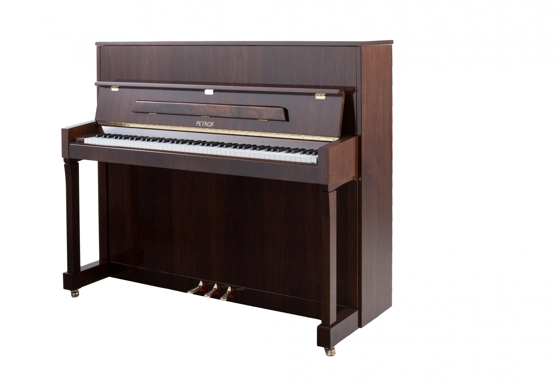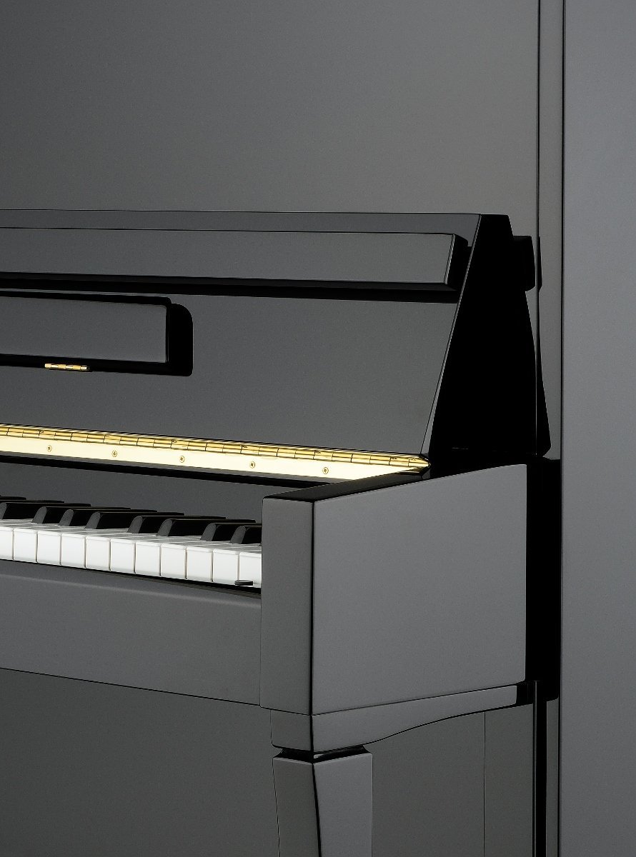 The P 122 N2 is the smallest in the Higher Series. We recommend it for beginners and advanced pianists, for teaching at basic and upper music schools, as an instrument to accompany singing and recitals, and for playing in a chamber orchestra or other musical ensemble. The cabinet design is modern and simple, and its panels, legs and supports have strictly geometric shapes.